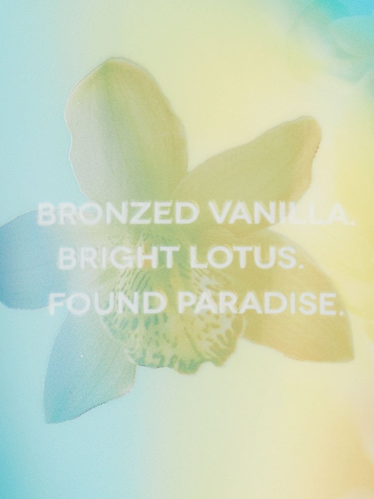 Inspirada en el paraíso terrenal con notas de vainilla bronceada, loto brillante y arena azucarada.